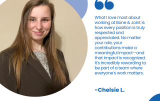Work-life balance is important to mental and physical health. Bone & Joint makes sure employees have time off to celebrate and spend time with their loved ones.