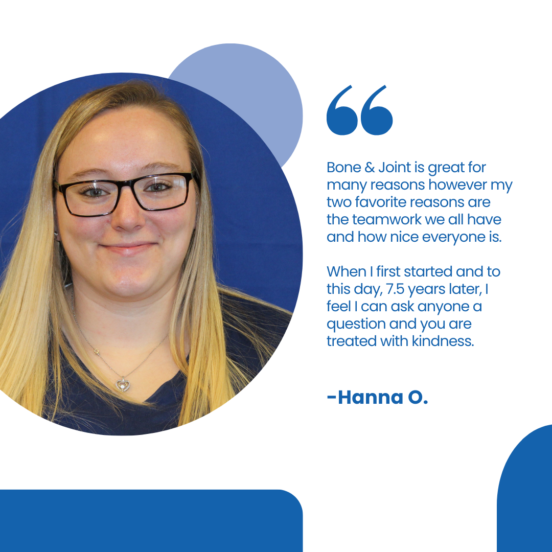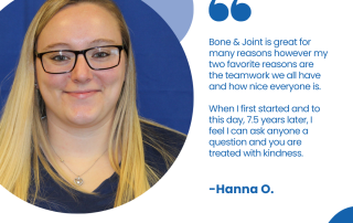 The Bone & Joint organization takes pride in providing exceptional patient experiences and high-quality care for all who enter our doors, including our employees.
